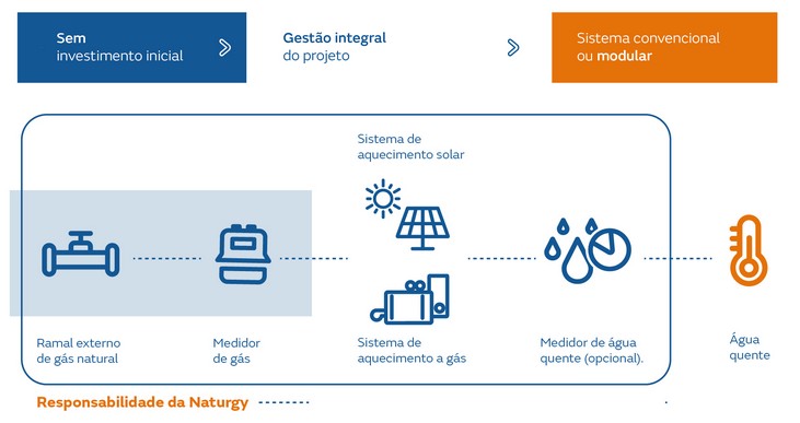 • Suporte e garantia de fornecimento contínuo para aquecimento de água.