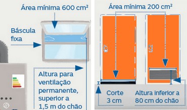 Os locais em que fogões e aquecedores estão instalados deverão ter ventilação na parte inferior e superior do ambiente.