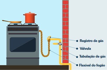 Fogões e aquecedores devem estar instalados com tubo flexível e registros apropriados para gás canalizado e em locais de fácil acesso. Não podem estar escondidos em armários embutidos.